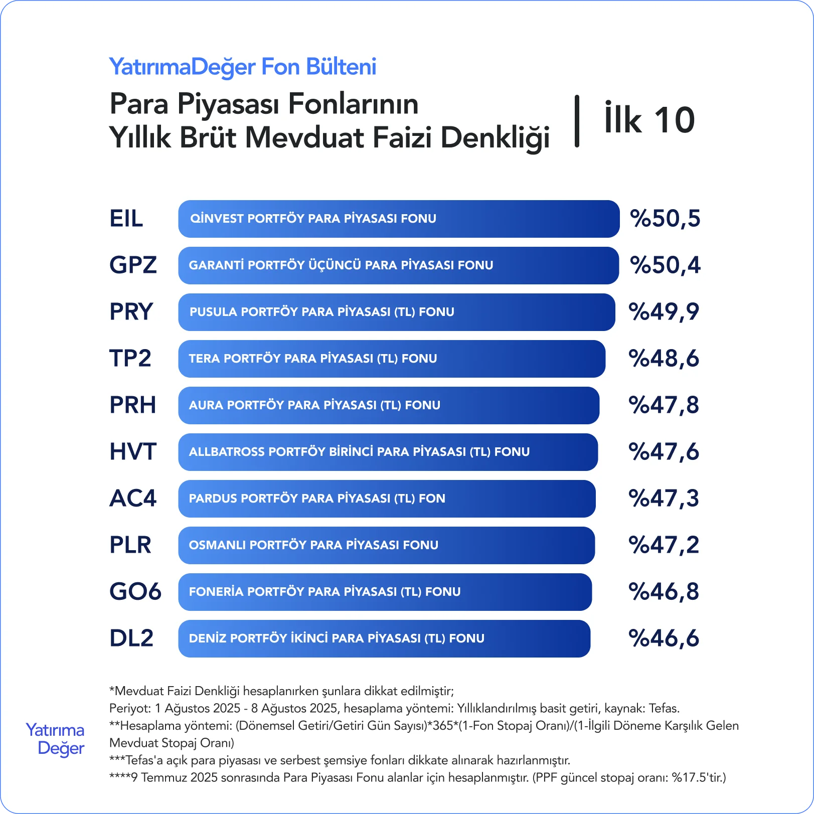 Para Piyasası Fonları: 1 Ağustos – 8 Ağustos 2025